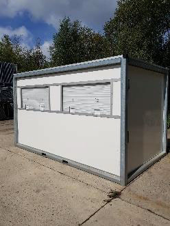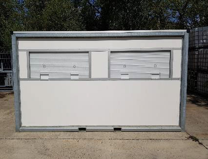 - Materiaal: gegalvaniseerd stalen frame met plywood wanden.